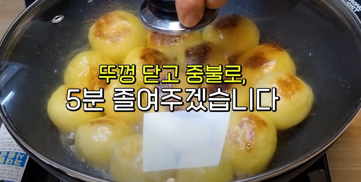 다 뒤집어 주었다면 뚜껑을 다시 닫고 중불을 유지하며 5분 더 졸여줍니다.