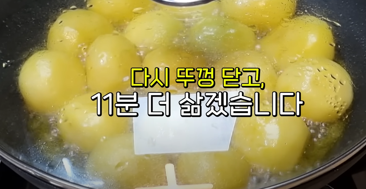 불 세기를 중불로 낮춘 후 11분 더 삶아주겠습니다.