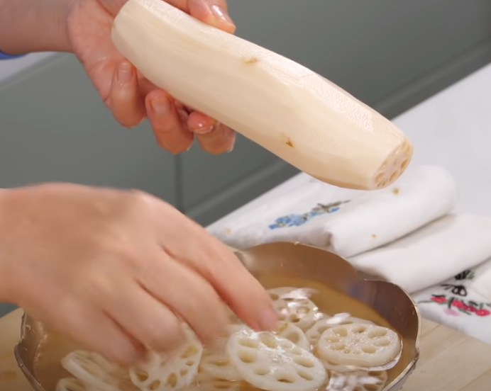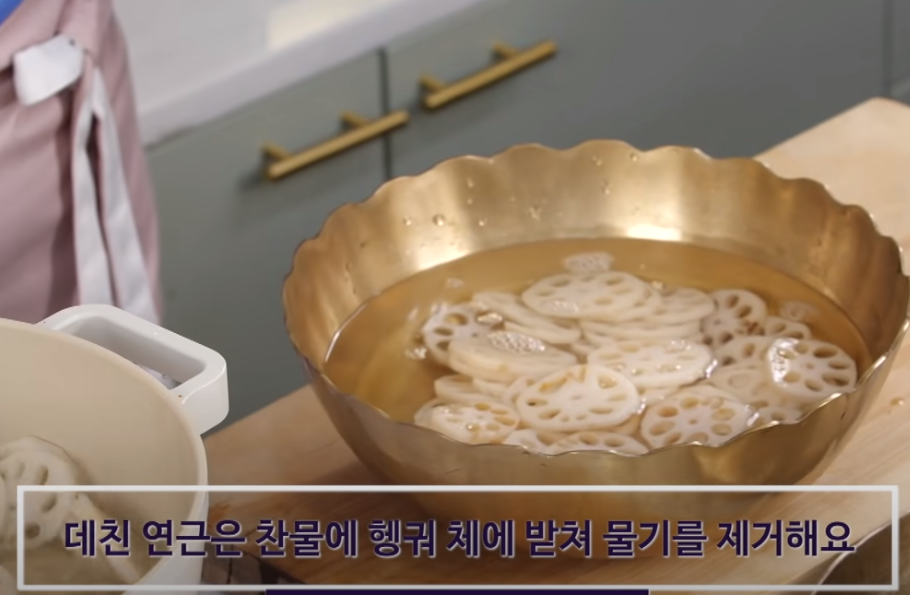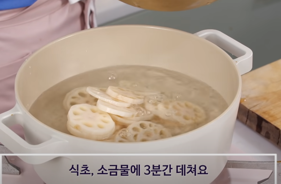 연근 갈변을 막으려면 식초 물에 담가 두시면 좋습니다. 데칠 때 식초를 넣는 이유는 연근 특유의 떫은맛을 없애주고