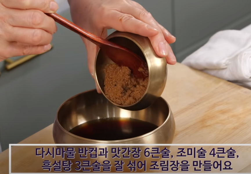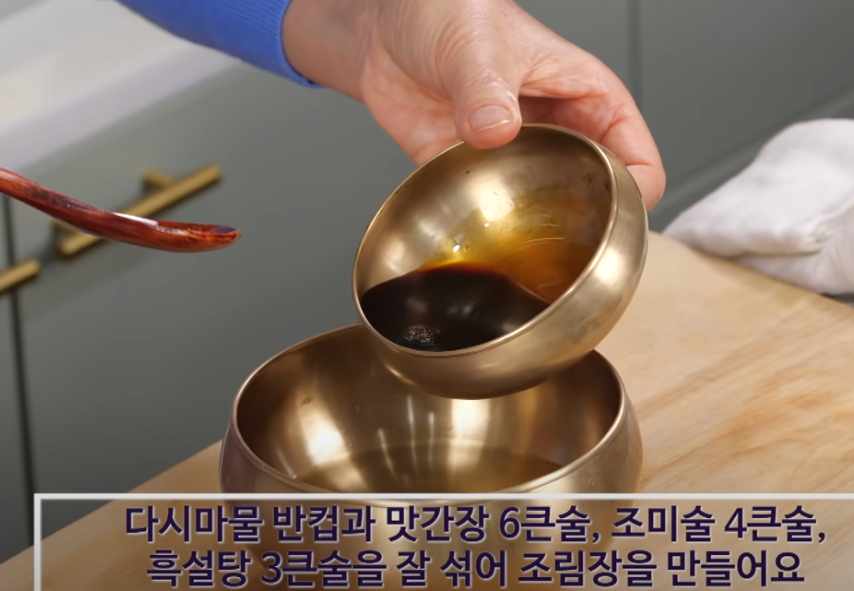 조림장) 다시마물 1/2c, 맛간장 6Ts, 조미술 4Ts, 흑설탕 3Ts,
