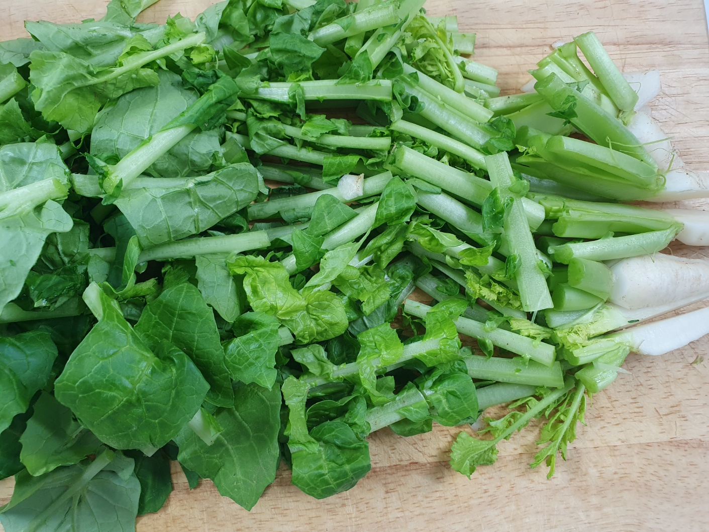 열무는 연해서 사람의 열기가 많이 닿으면 채소 특유의 풀내가 날 수 있으니 빠르게 손질해 줍니다.