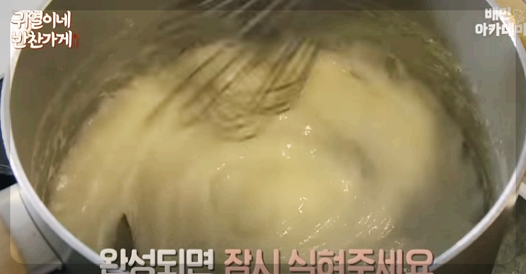 가장자리에 기포가 뽀글뽀글 올라오면 냉장고에 넣어주세요.