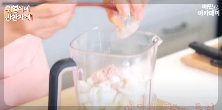 상태로 갈아줍니다, 곱게 갈면 국물이 텁텁할 수 있으니 너무 곱지 않게 갈아주세요.