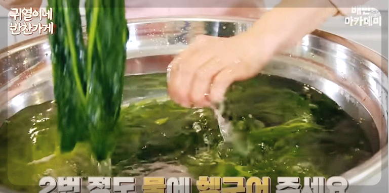 상태에서 문지르면 풋내 나서 버려야 합니다. 깨끗하게 2~3번 씻어 채반에 받쳐 물기를 빼주세요.
