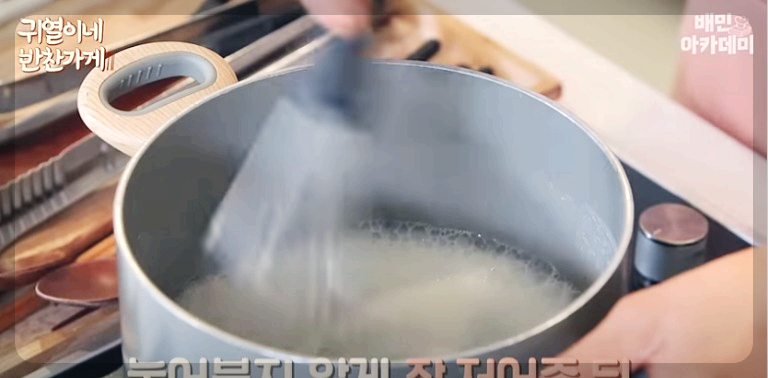 여름에는 빨리 발효가 되니 찹쌀풀보다 밀가루, 메밀가루로 풀을 쑤어주면 좋은데요. 밀가루나 메밀가루로