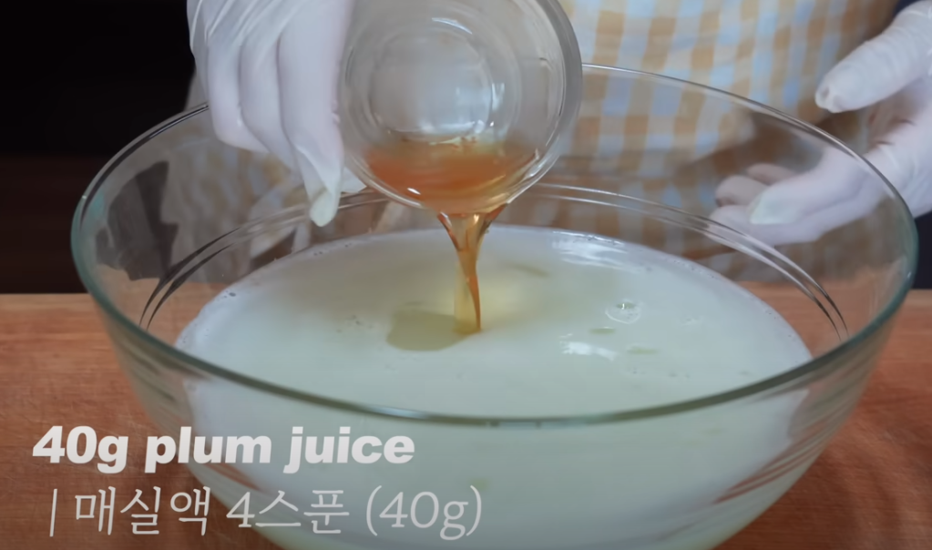 매실액 4큰술과 굵은소금 1.5큰술을 섞어 국물을 만들어줍니다.