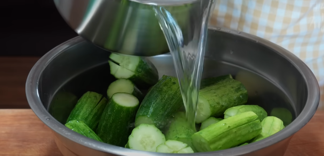 끓는 물을 오이에 부으면 아삭한 식감이 좋으며 먹는 내내 맛있게 드실 수 있답니다.