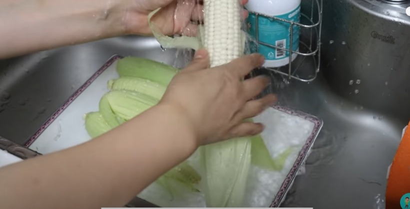 손질한 옥수수를 씻어줄건데요. 혹시 모를 벌레나 이물질 데거를 위해 껍질 안쪽도 꼼꼼하게 흐르는 물에 잘 씻어