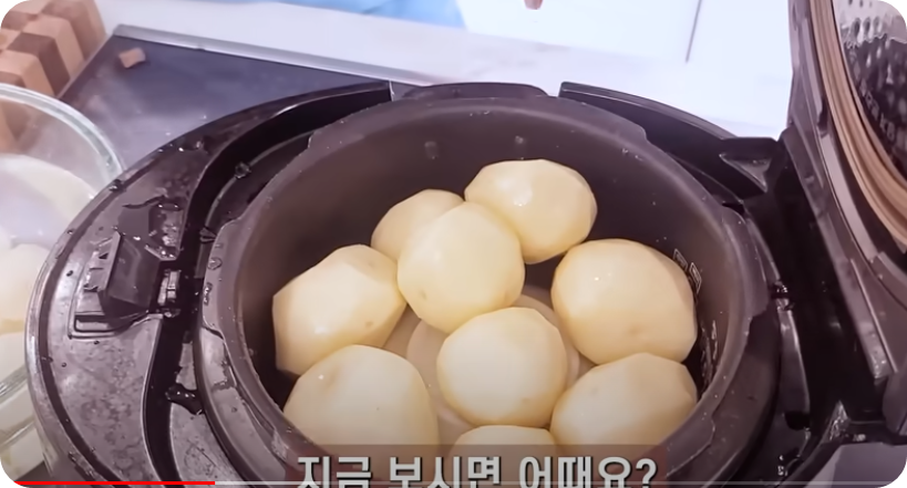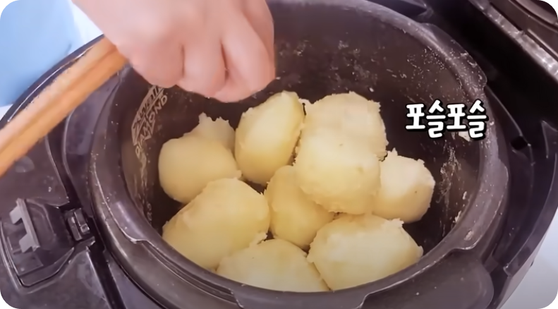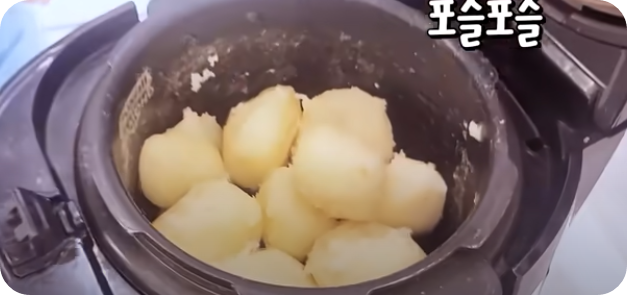 눌러주고 다른 일 하시면 알아서 전기밥솥이 감자를 쪄줍니다.