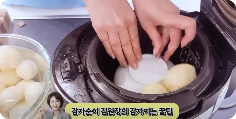 촉촉하고 부드럽게 삶아진 이유가 바로 대접 안 물이었네요. 대접이 수분을 적절하게 유지해 주면서 감자가 물에 닿지