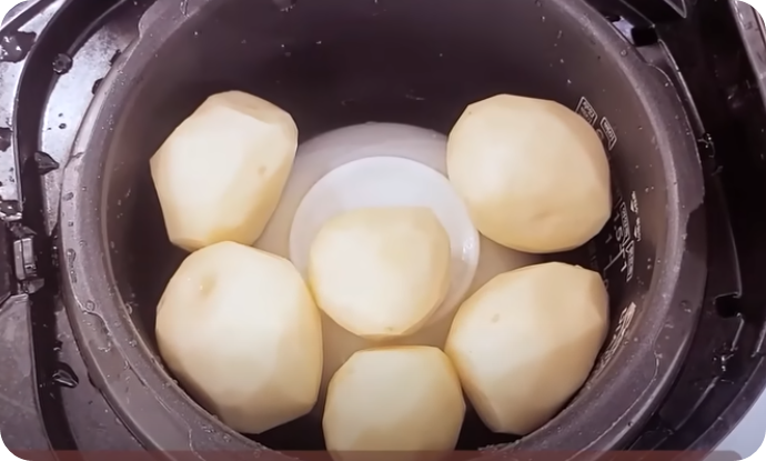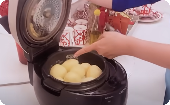 분이 나기 시작하면 감자를 밥솥에 넣고 보온 재가열을 눌러주세요.