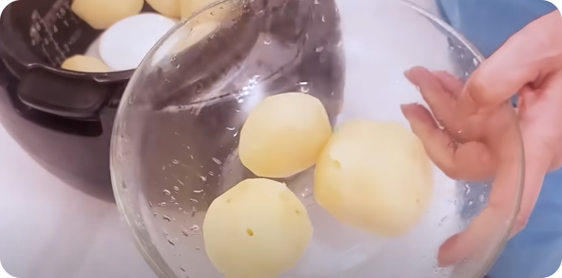 감자는 미리 껍질을 벗겨 부드럽고 불나게 할 수 있는 준비를 해줍니다. 감자 표면이 수분을 많이 머금을 수 있도록