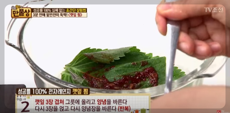 전자레인지 깻잎찜은 한 번에 먹을 양 30장 양념해 전자레인지에 2분 돌려주는 향긋한 밑반찬 깻잎찜 완성,