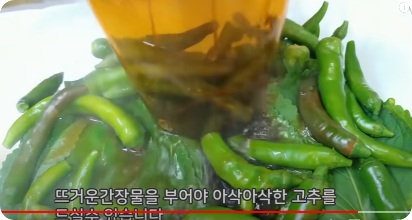 뜨거운 간장물을 부어야 고추가 아삭한 식감을 유지해 맛이 좋은 장아찌가 되니 간장물이 뜨거울 때 부어주세요.