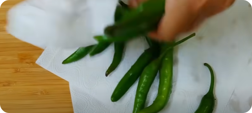 식초 물에 담가 살균, 농약 잔류 등 제거하는 효과가 있습니다. 20분 담가 준 고추는 깨끗하게 휑궈 키친타월