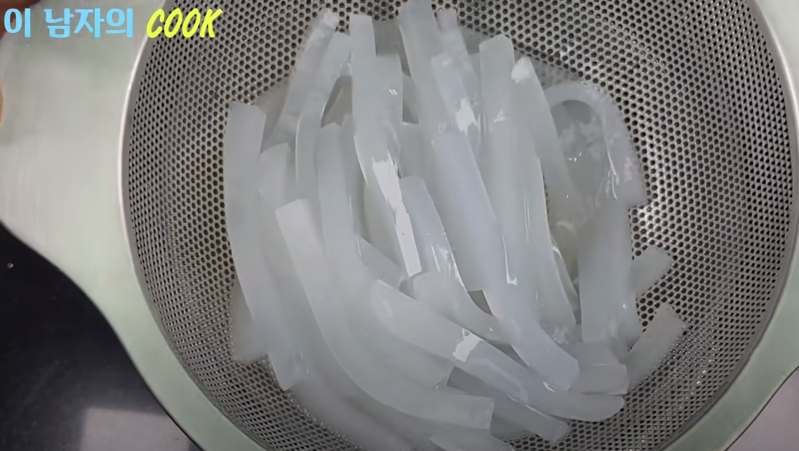 묵이 반투명해질 때까지 데쳐줍니다.데친 청포묵을 건져 낸 후 찬물에 살짝 담가 식혀주세요.