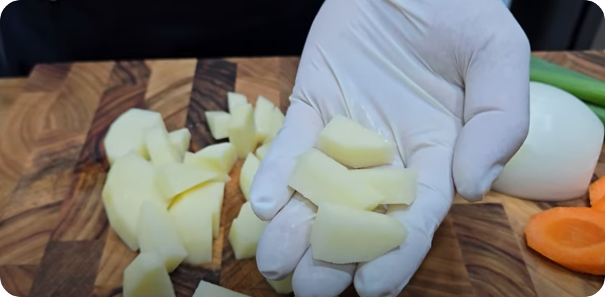 감자,양파,애호박을 먹디 좋은 크기로 썰어주고 단근은 색감을 위해 약간만 잘게 썰어줍니다. 대파 3줄 송송 썰어주세요.