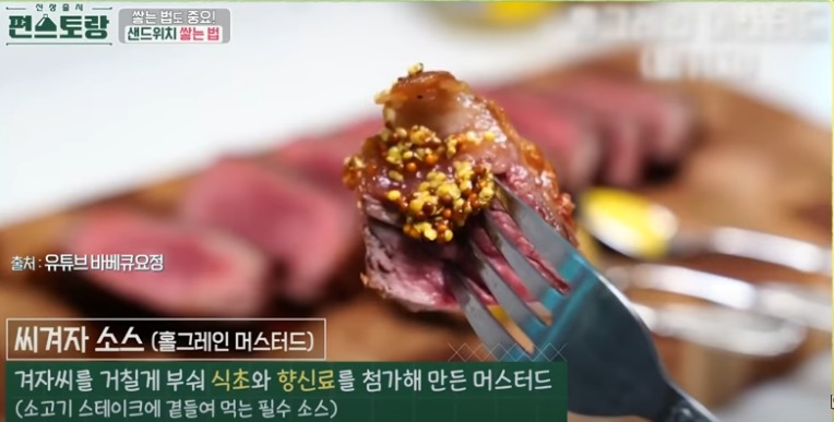 파는 맛을 내주는 씨겨자 소스는 꼭 넣어주세요, 씨겨자는 겨자씨를 거칠게 부숴 식초와 향신료를 첨가해 만든 머스터드
