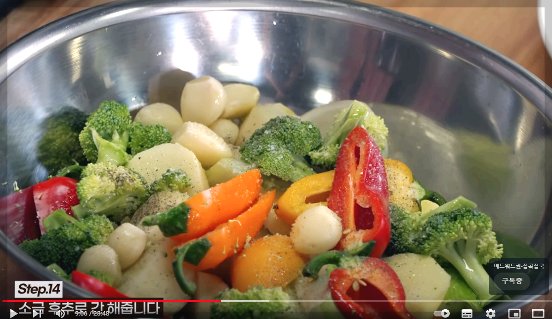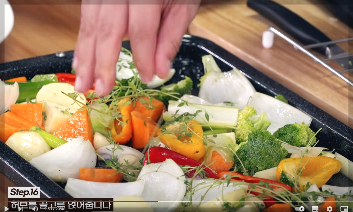 채소를 고기와 함게 굽게 되면 채소의 수분이 올라오면서 맛과 풍미가 훨씬 좋아집니다.