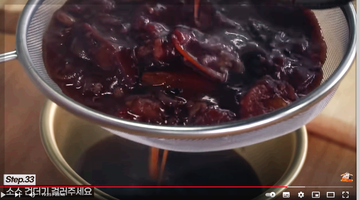 체망에 와인 넣어 졸인 소스를 걸러 준비합니다. 오늘 만든 소스는 한번 만들 때 넉넉하게 만들어 두고 드시면