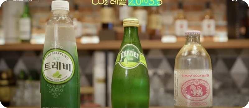 금방 녹아버려 맛을 흐리기 쉬워요. 턴산수는 톡 쏘는 맛이 강한 게 좋은데요. 탄산수는 뚜껑을 열었을 때 기포가