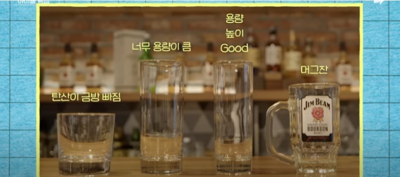 크며 탄산수는 기포가 강하게 올라오는 것을 사용하고 위스키는 나에게 맞는 너무 비싸지 않은 걸로 선택하고 차간 운