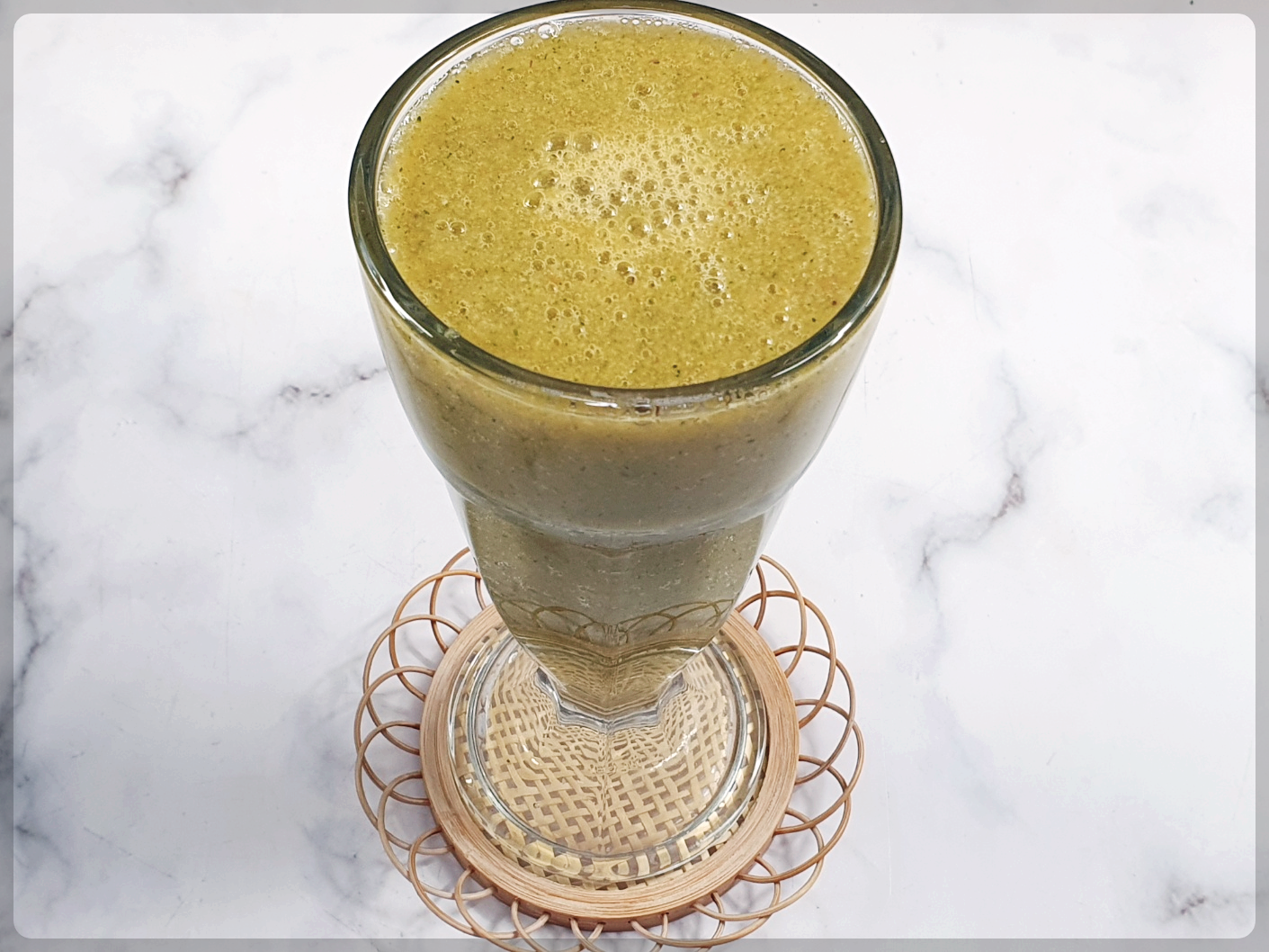 완성된 해독주스를 잔에 따라주세요. 아침에 일어나서 한 잔 정도 드시는 것과 식사 대용으로 한 끼정도는 괜찮지만