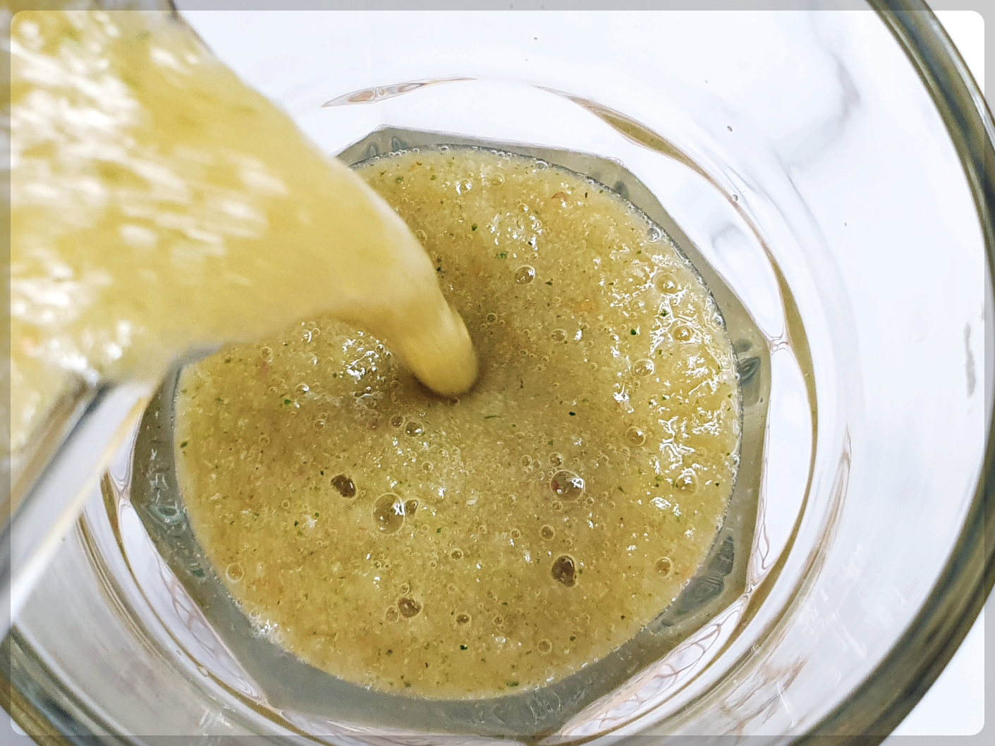 이때 보관하고 드실 거라면 한 꼬집의 소금을 넣어 갈아주면 보관기간을 약간 늘릴 수 있습니다.